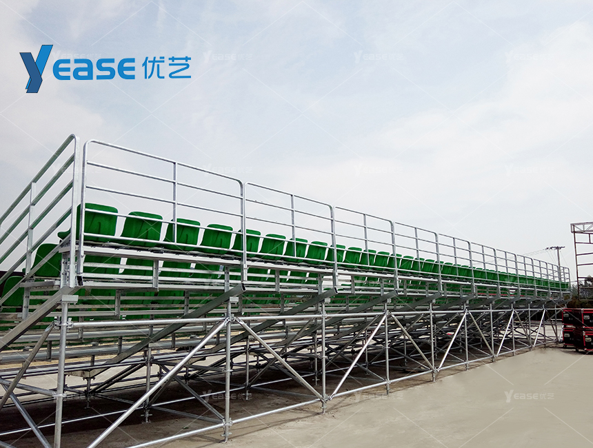 堅固耐用的鋼結構看臺系統(tǒng),滿足戶外場館長期使用與高承載要求。