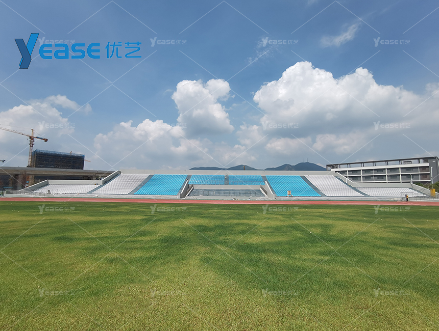 堅固耐用的鋼結構看臺系統(tǒng),滿足戶外場館長期使用與高承載要求。