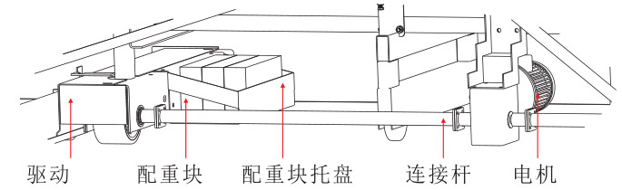 A.如果看臺有行走過程中卡住、走偏,檢查排鎖、配重塊(配重塊托盤,見圖3-4)。